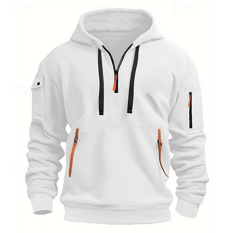 Casual Men's Hooded Zip-Up Sweatshirt with Multiple Pockets Thick Fabric Oversized Fit Autumn/Winter Sport Jacket