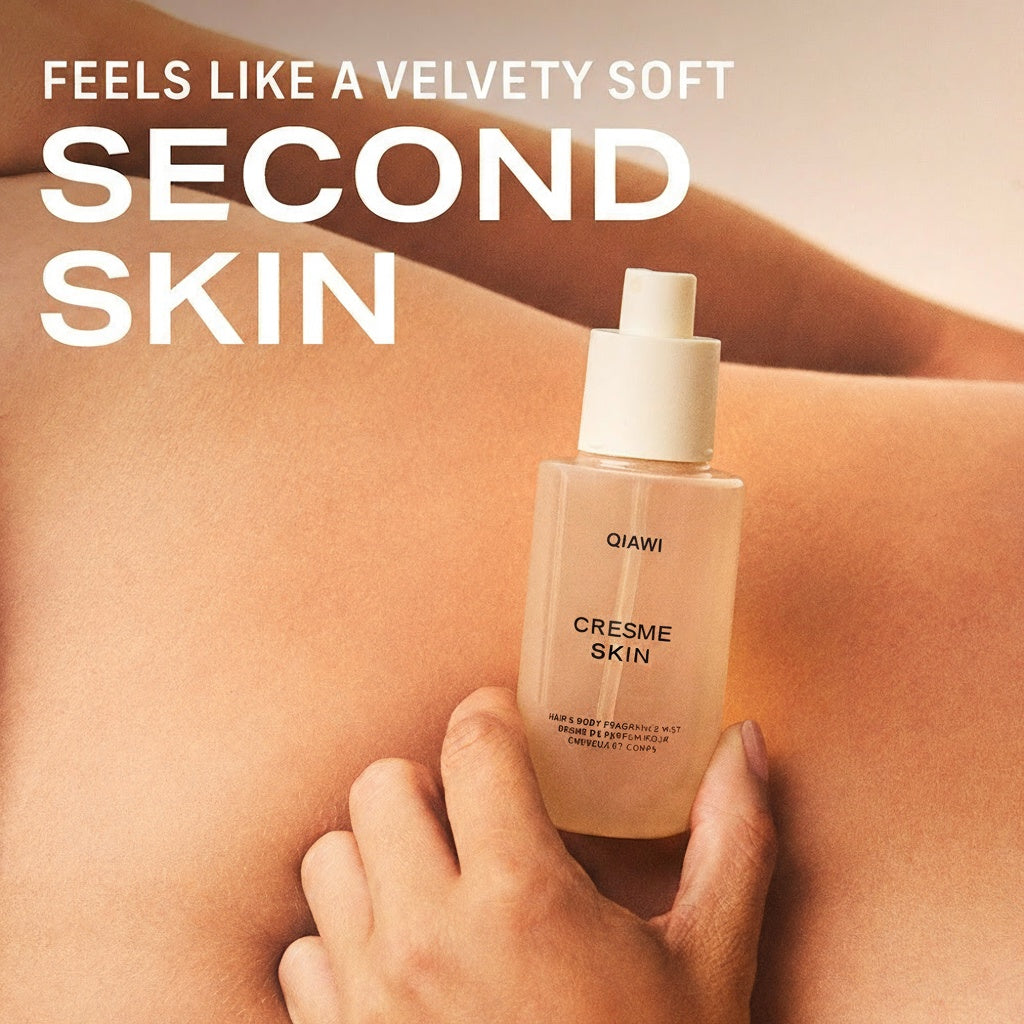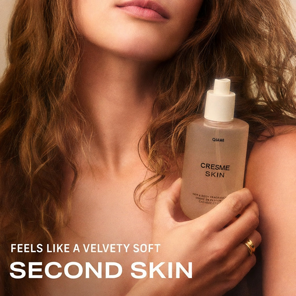 Meet QIAWI CRESME Skin Body Mist — a skin-loving fragrance that melts into your body like the softest sweater.